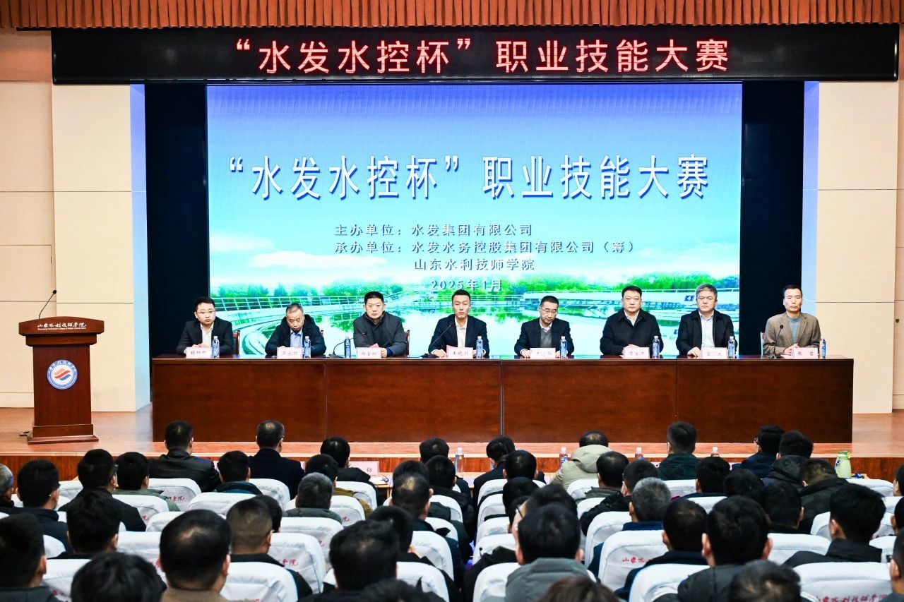 元月8日,迎著冬日的暖陽,山東水利技師學(xué)院學(xué)術(shù)報告廳里氣氛莊嚴(yán)而熱烈,來自水發(fā)集團(tuán)各權(quán)屬公司的130余名崗位技能人才齊聚一堂,水發(fā)集團(tuán)“水發(fā)水控杯”職業(yè)技能大賽開幕式在此拉開帷幕。水發(fā)集團(tuán)黨委委員、副總經(jīng)理王曉川,山東水利技師學(xué)院黨委副書記鄭金剛出席活動。