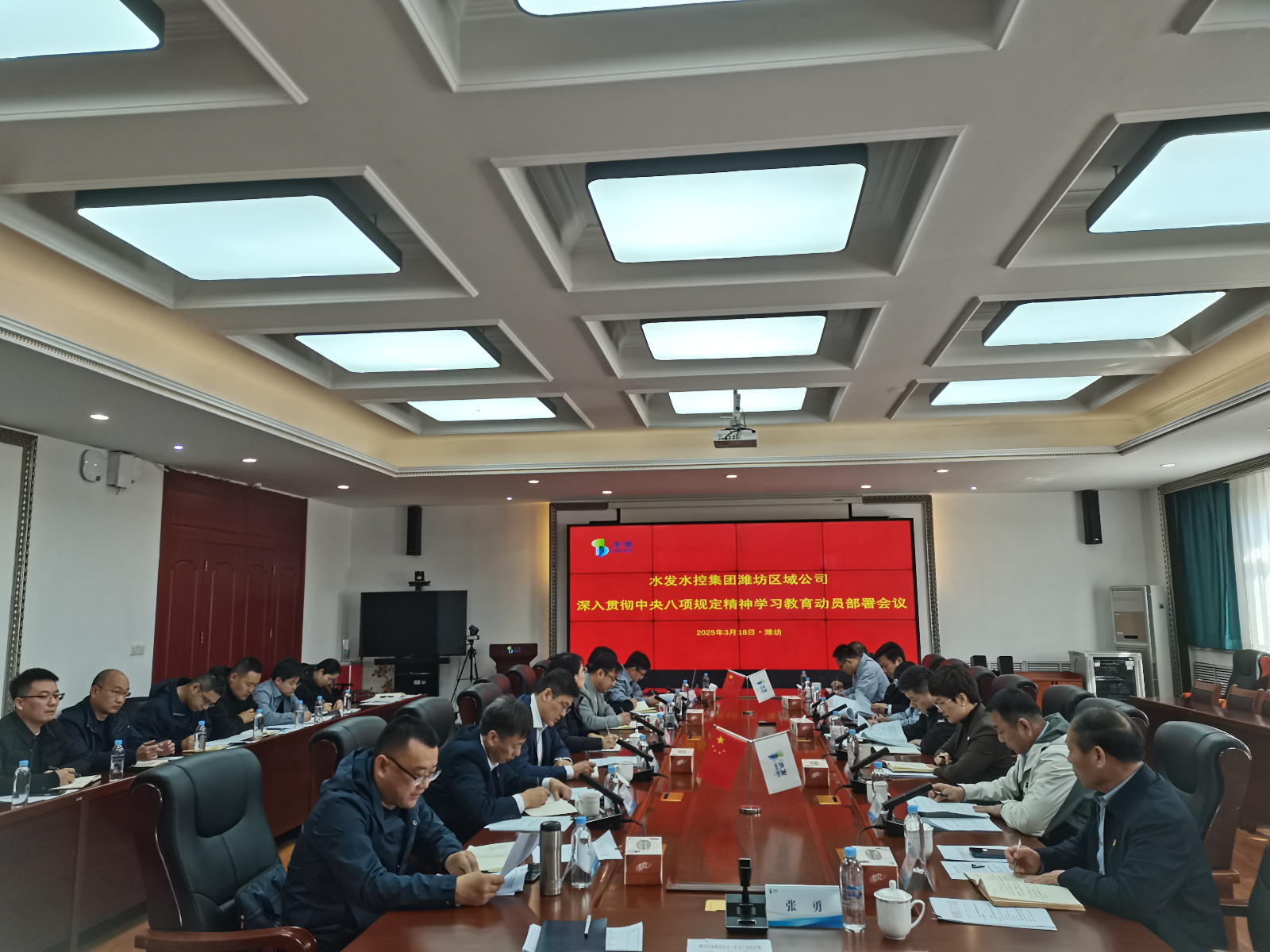 為進一步增強干部職工紀律規(guī)矩意識,營造風清氣正的良好政治生態(tài)。3月18日,水發(fā)水控集團濰坊區(qū)域公司召開深入貫徹中央八項規(guī)定精神學習教育動員部署會。濰坊區(qū)域公司總經理張勇主持,區(qū)域領導班子成員、各部室負責人、各公司主要負責人參加會議。