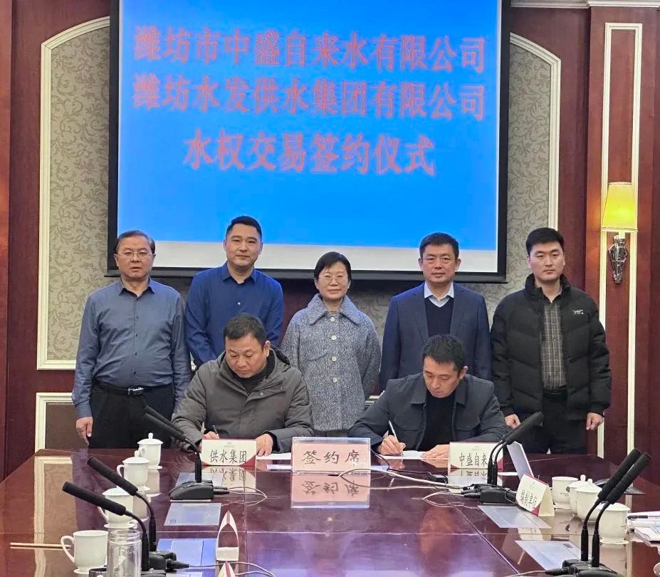1月2日,水發(fā)水控濰坊水發(fā)供水集團有限公司與濰坊市中盛自來水有限公司舉行水權(quán)交易簽約儀式,標(biāo)志著山東省首例跨區(qū)域取水權(quán)交易成功落地,是深入推進水權(quán)改革的標(biāo)志性成果。省水利廳水資源處一級調(diào)研員題偉,濰坊市水利局黨組成員、市水利事業(yè)發(fā)展中心主任韓俊清,峽山區(qū)、濱海區(qū)水利局負責(zé)人參加評審并見證交易簽約儀式。
